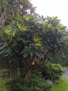 Mahonias are upright evergreen shrubs. They grow to about 3m high and wide so are great for the back of a border. Their bright yellow, fragrant flowers appear in late Autumn/early Winter giving a welcome shot of colour. They also provide much needed pollen and nectar for bees during the Winter and seeds for birds in the Spring/Summer.